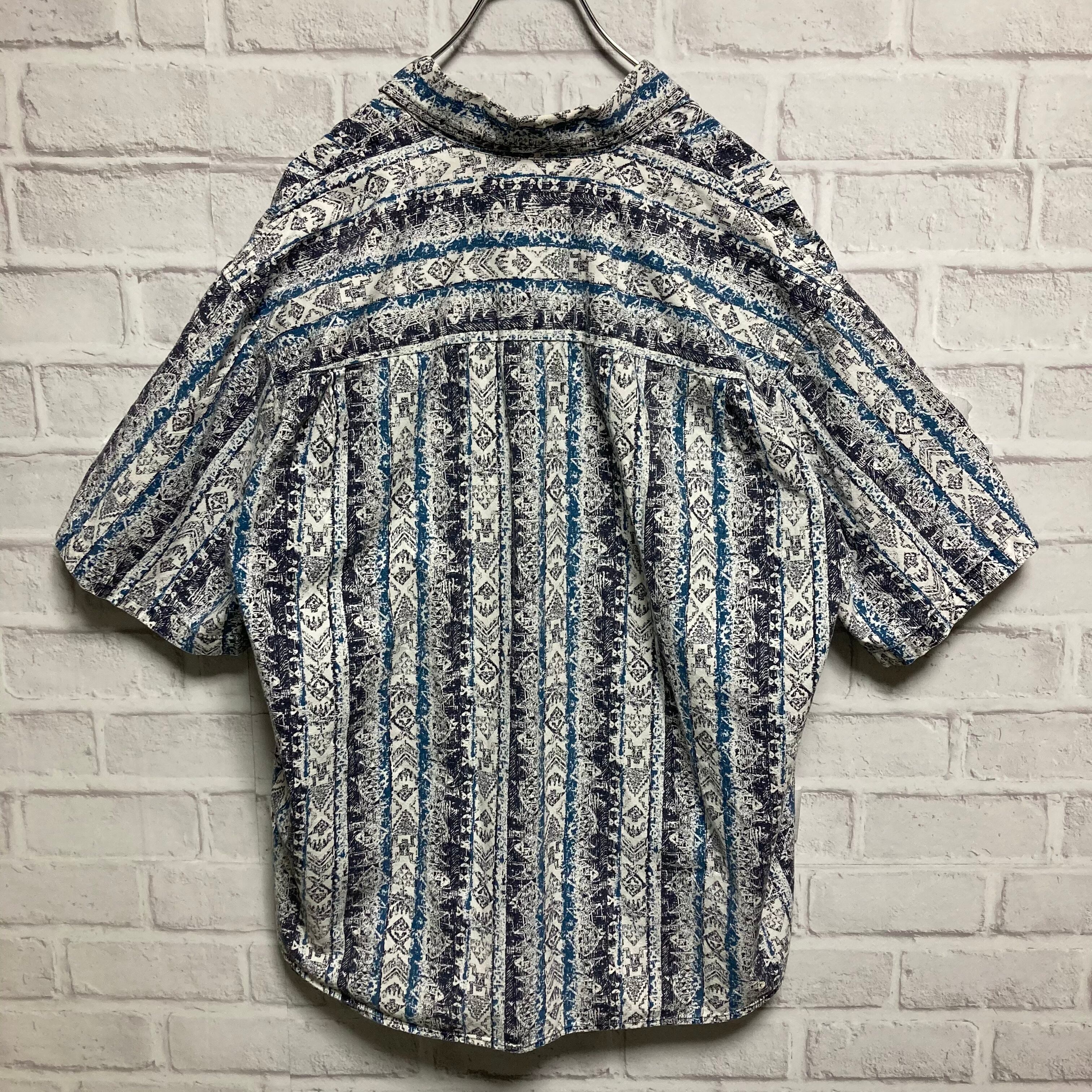 【Triumph】S/S Shirt L Made in USA 柄シャツ 総柄 半袖 ネイティブパターン アメリカ製