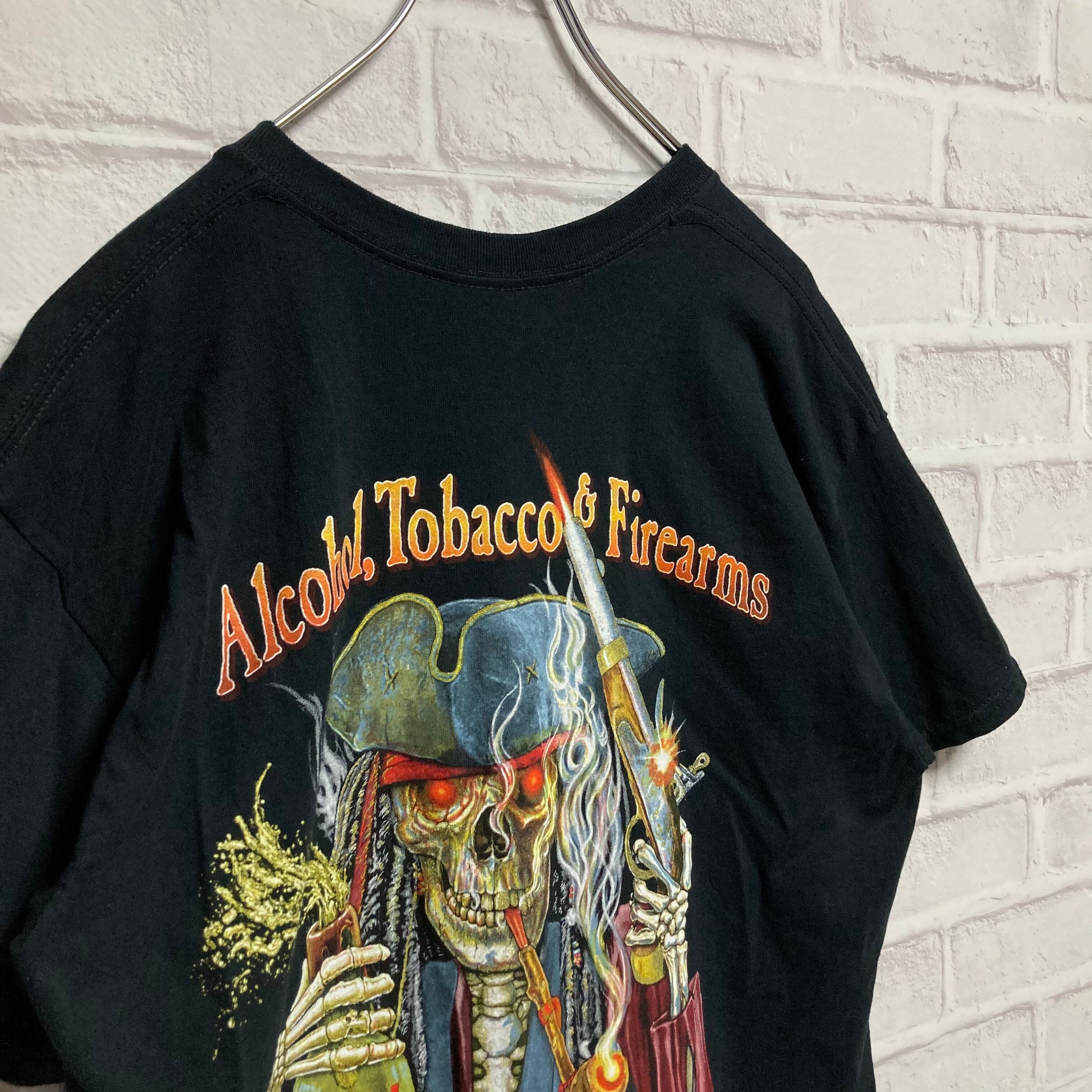 ブラック 黒 胸ロゴ 海賊 ドクロ 骸骨 酒 タバコ