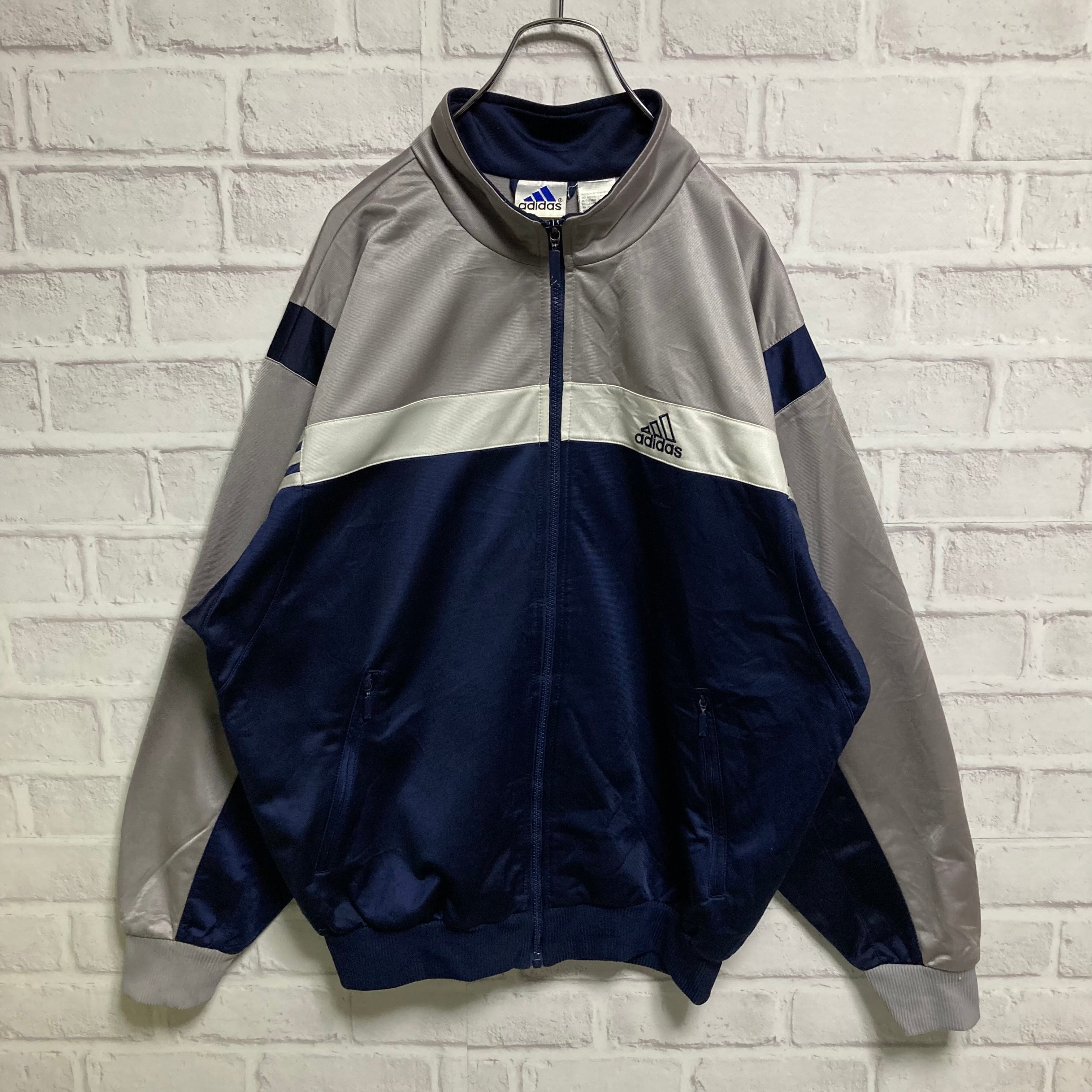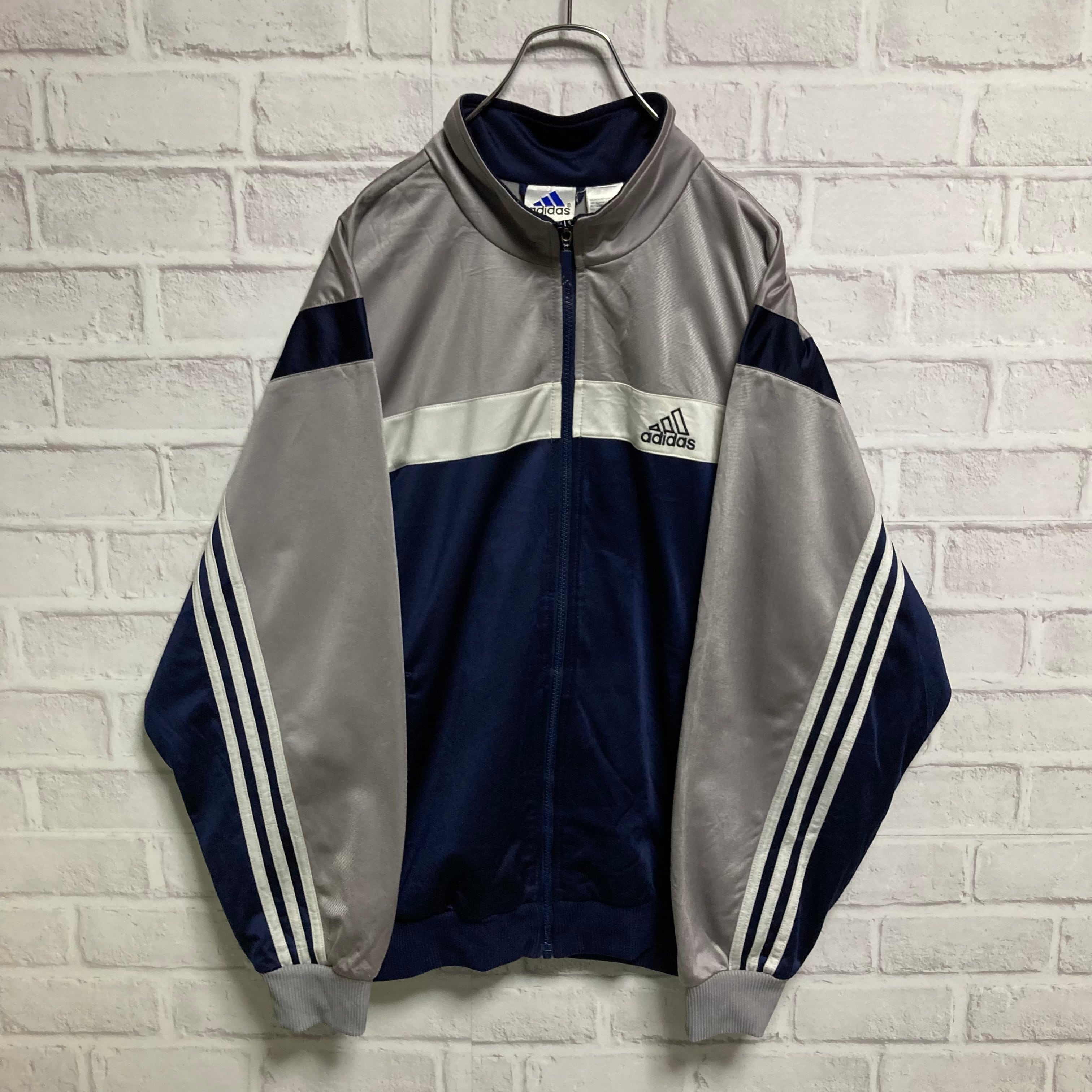【adidas】Track Jacket XL相当 90s アディダス トラックジャケット ジャージ 刺繍ロゴ 胸ロゴ バックロゴ パフォーマンスロゴ スリーライン ゆるだぼ ビッグシルエット オーバーサイズ アメリカ 古着