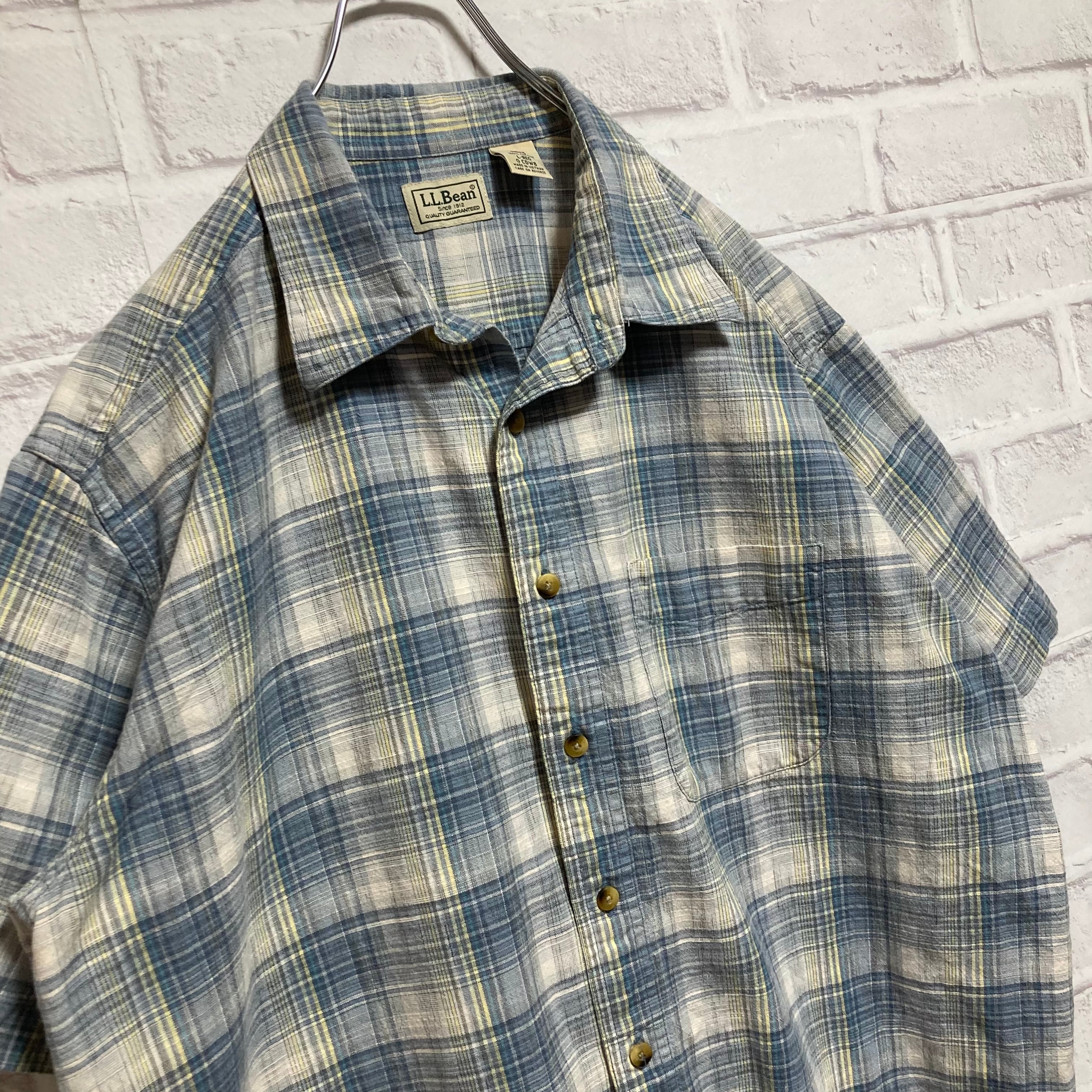 【L.L.Bean】S/S Check Shirt L エルエルビーン 半袖チェックシャツ チェック柄 開襟シャツ オープンカラー アメリカ 古着