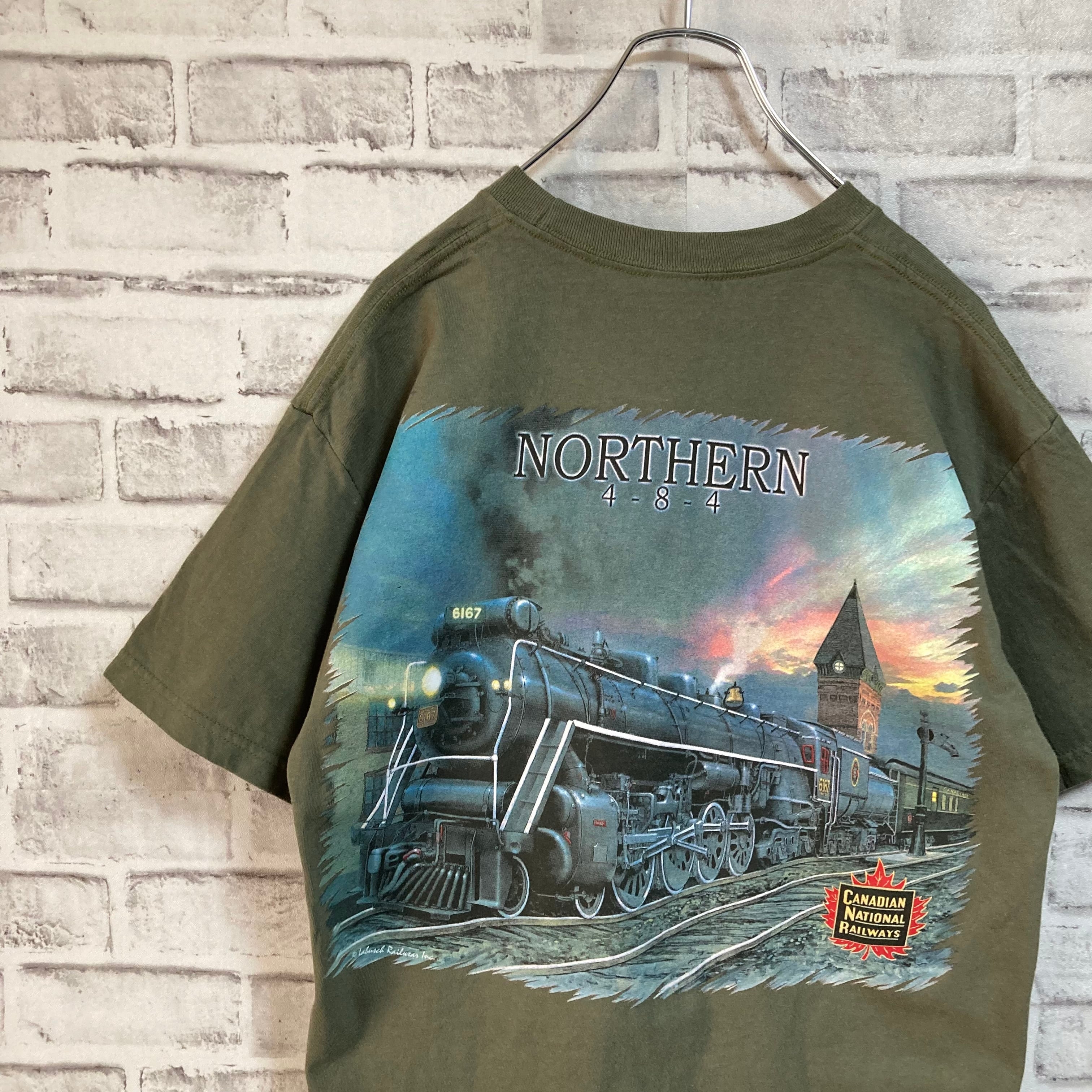 【M&O Knits Heavy Weight】S/S Tee L相当 “CANADIAN NATIONAL RAILWAYS” バックプリント 両面プリント Tシャツ 鉄道 機関車 企業モノ 企業ロゴ アメリカ USA 古着