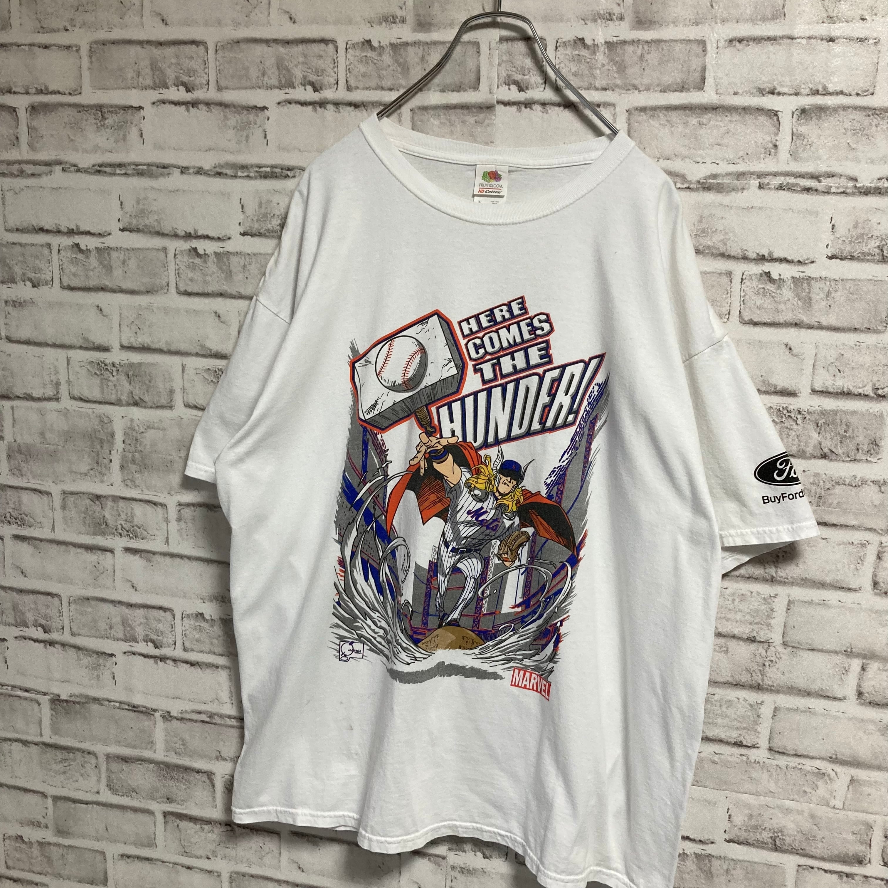 【FRUIT OF THE LOOM】S/S Tee XL “NY Mets, MALVEL” ニューヨークメッツアメコミ コラボTシャツ スポーツモノ 企業ロゴ フォード アメリカ USA 古着